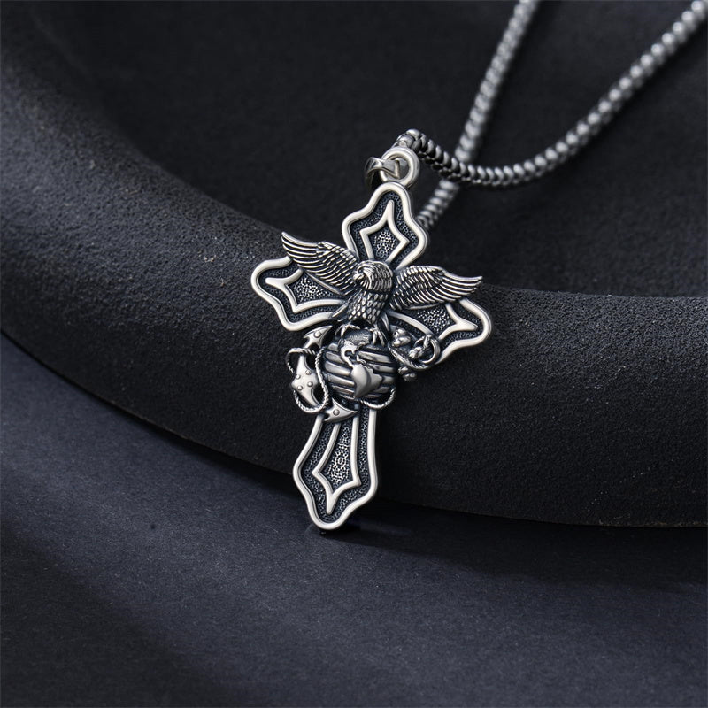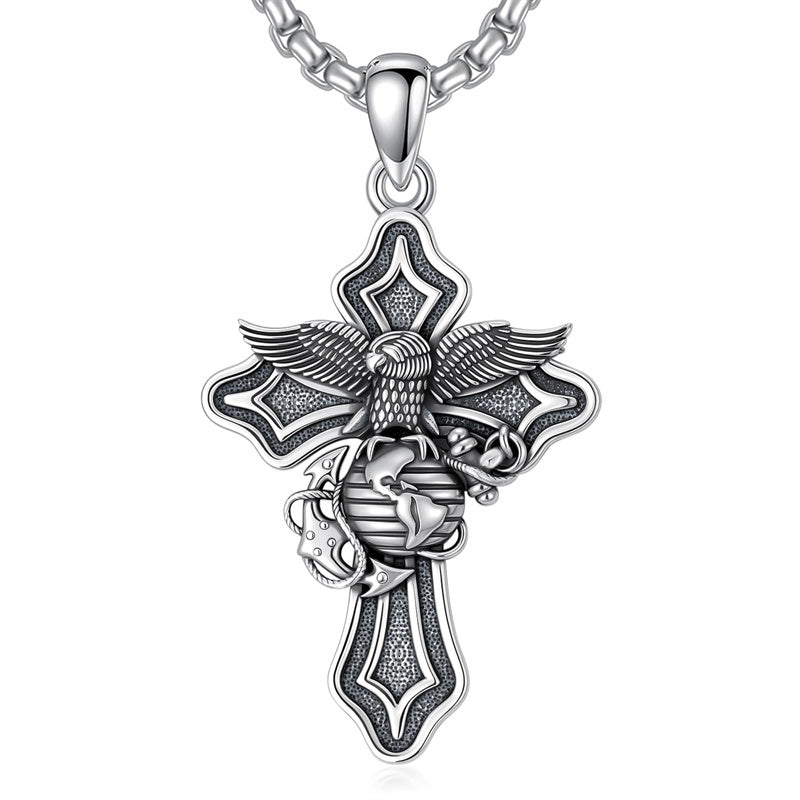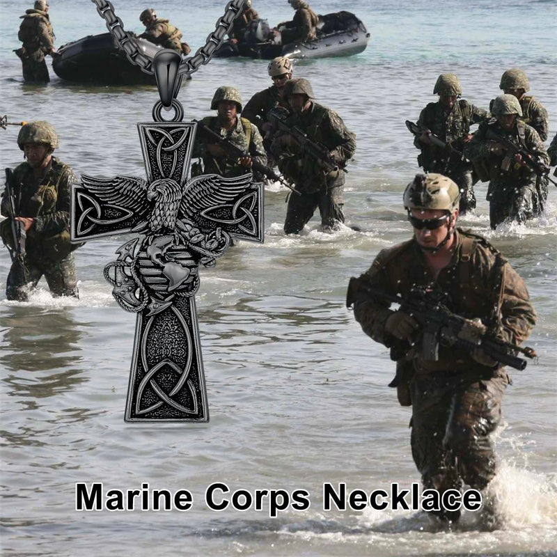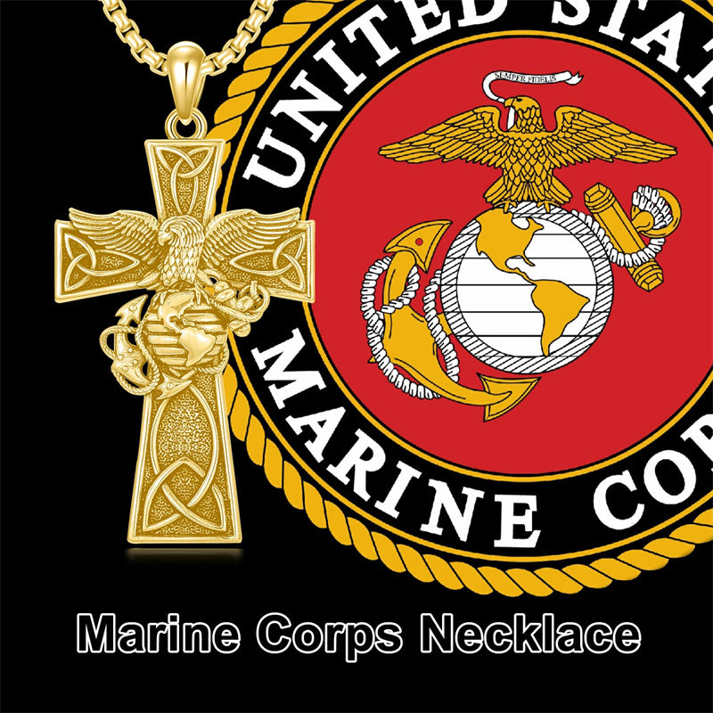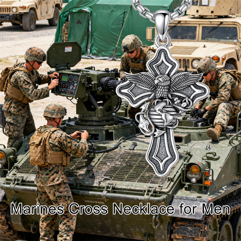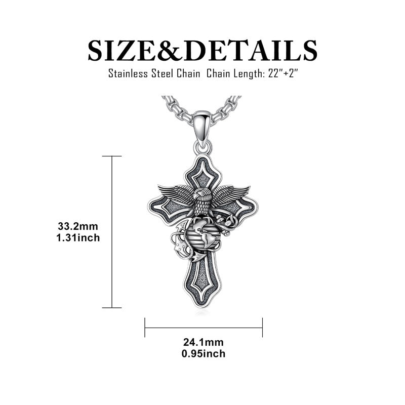 The Marines Necklace is A wider, sturdier, thicker cross pendant with the Marines' symbol, an Oxidized electroplating process, it looks very textured and advanced, could be sent to men or a husband as a special gift.