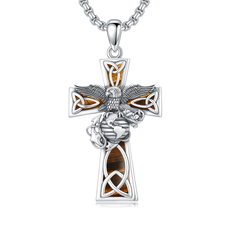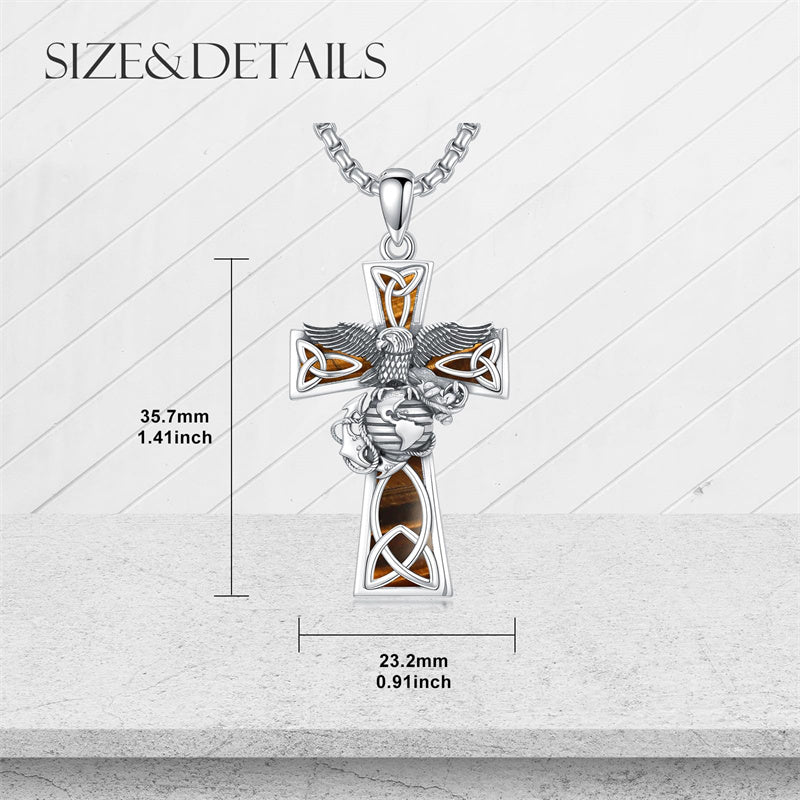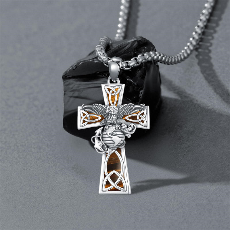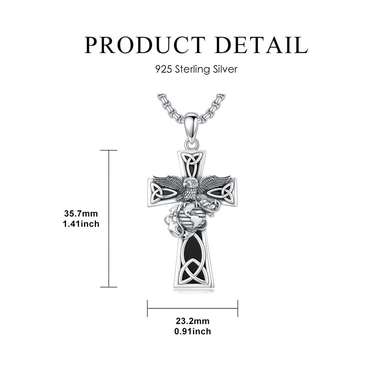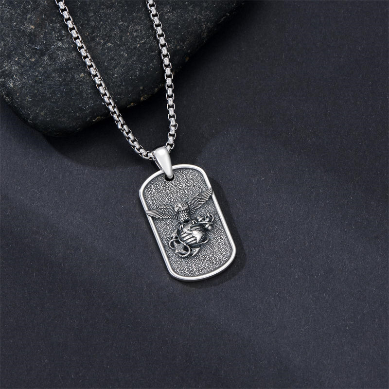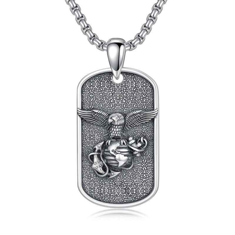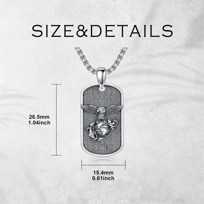The Marines Necklace is A wider, sturdier, thicker cross pendant with the Marines' symbol, an Oxidized electroplating process, it looks very textured and advanced, could be sent to men or a husband as a special gift.