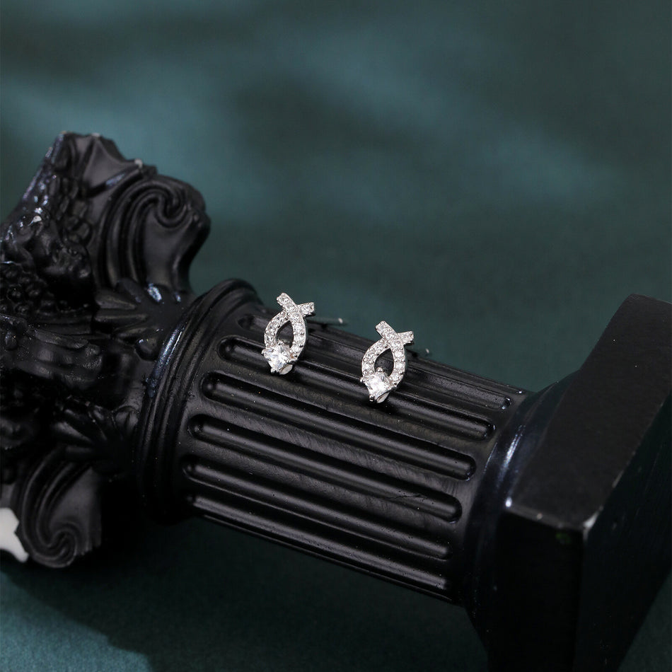 These exquisite earrings showcase a stunning symmetrical design, featuring a central princess-cut zircon encased in a sleek silver setting. Surrounding the main stone is a meticulously arranged halo of smaller round zircons, creating a radiant burst of sparkle. The intricate crisscross pattern of the band adds a modern yet timeless aesthetic, while the polished metal enhances the gemstones' brilliance. Crafted with precision, these earrings exude luxury and sophistication, perfect for formal events or everyday elegance. Their balanced proportions and high-quality craftsmanship make them a versatile addition to any jewelry collection, symbolizing refined taste and enduring style. Whether worn alone or paired with complementary pieces, they promise to elevate any outfit with their captivating allure.