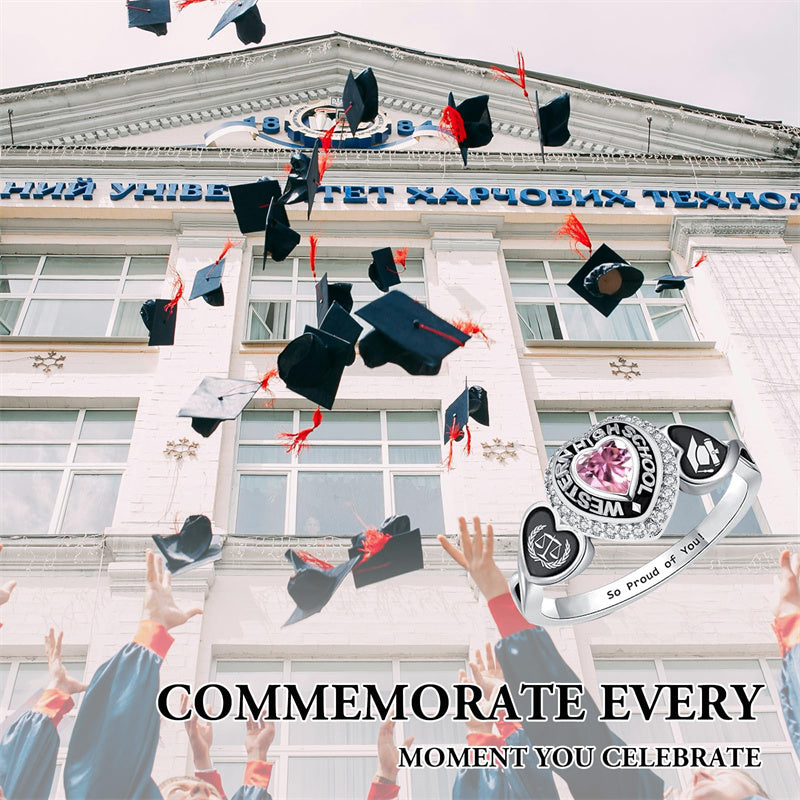This personalized class ring is the perfect gift for any high school or college graduate. Packaged in a beautiful Romanticwork gift box, it symbolizes hard work, achievement, and the exciting journey ahead.