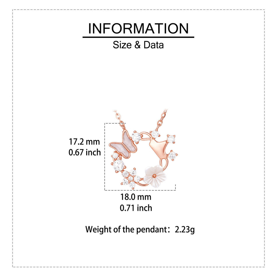 925 Sterling Silver Elegant Rose Gold Butterfly & Flower Necklace With Gemstone Accents