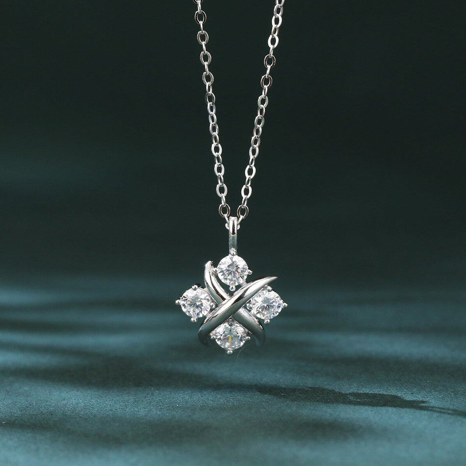 This exquisite zircon pendant necklace showcases four dazzling round-cut zircons meticulously set in a striking cross formation, each securely held by four prongs for maximum brilliance. Crafted from high-polish sterling silver, the pendant exudes timeless elegance while the delicate chain complements its sophisticated design. Perfect for elevating any outfit, whether for formal events or everyday sophistication, this piece combines exceptional craftsmanship with enduring style. A symbol of luxury and refined taste, it makes an ideal gift for milestones or self-indulgence, promising to become a cherished heirloom.