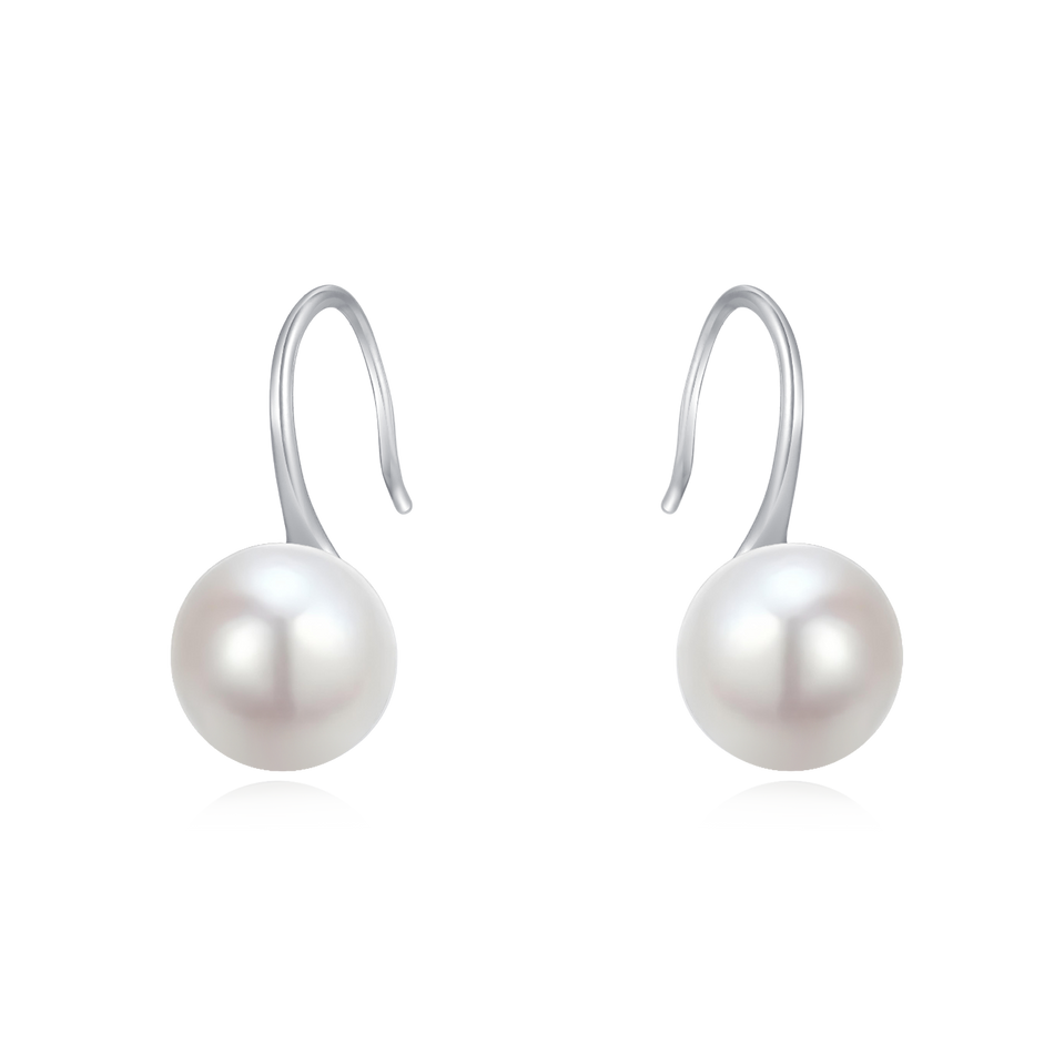 These exquisite pearl drop earrings feature luminous white pearls suspended from polished sterling silver hooks, exuding timeless sophistication. Crafted with precision, the smooth, round pearls catch light beautifully, while the sleek metallic hooks ensure secure wear. Designed for versatility, they transition effortlessly from casual outings to formal events, pairing perfectly with minimalist or elaborate ensembles. The combination of natural pearl iridescence and the cool sheen of sterling silver creates a harmonious balance between elegance and understated charm. Ideal for everyday wear or special occasions, these earrings make a refined statement, enhancing any outfit with their classic allure. Their durable construction guarantees long-lasting beauty, making them a cherished accessory for jewelry lovers seeking both quality and style.