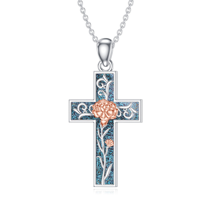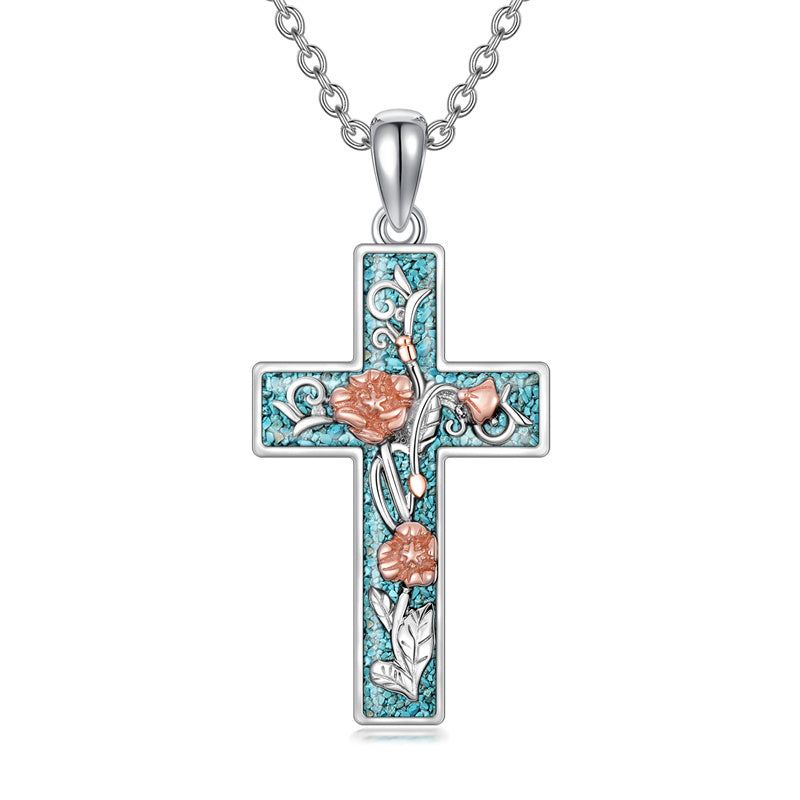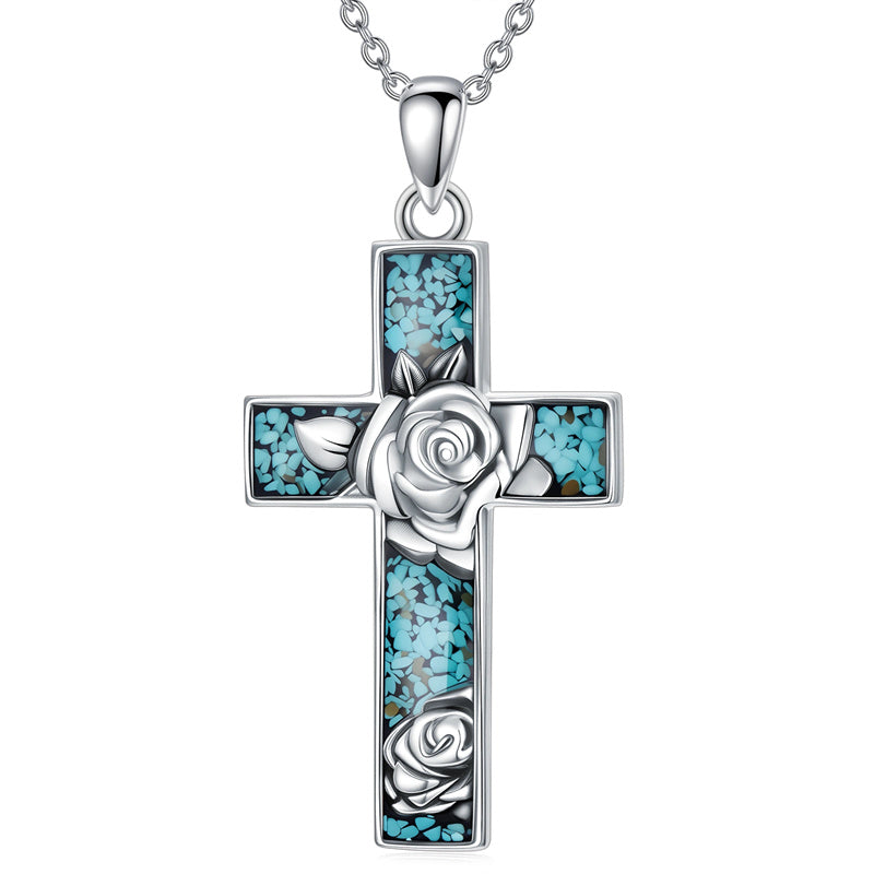 Lily Cross Necklace: Lily is the birth flower of May. This plant is decorated with exquisite small bells and has the sweetest smell. Its name means "return to happiness". It represents all the little things in life that can bring us happiness. If you want to give a lover born in May, the Lily cross turquoise necklace is your best choice!