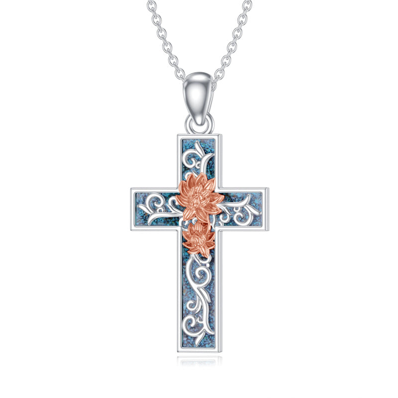 Lotus Flower Cross Necklace: The lotus is the birth flower in July. A lotus grows in the mud and retreats in the mud every night, but it always blooms cleanly.