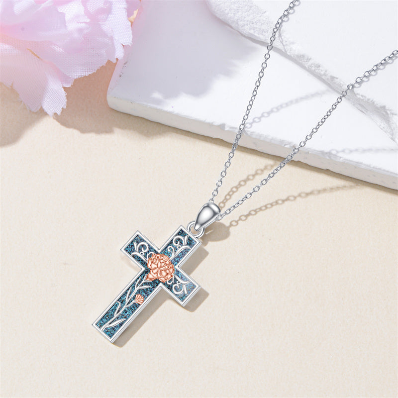 Peony Cross Necklace: Peony is the birth flower in September. Peony is unique. A peony will bloom for more than 100 years, year after year, and it will bloom as scheduled every year. If you want to give to a lover born in September, the peony necklace is your best choice!