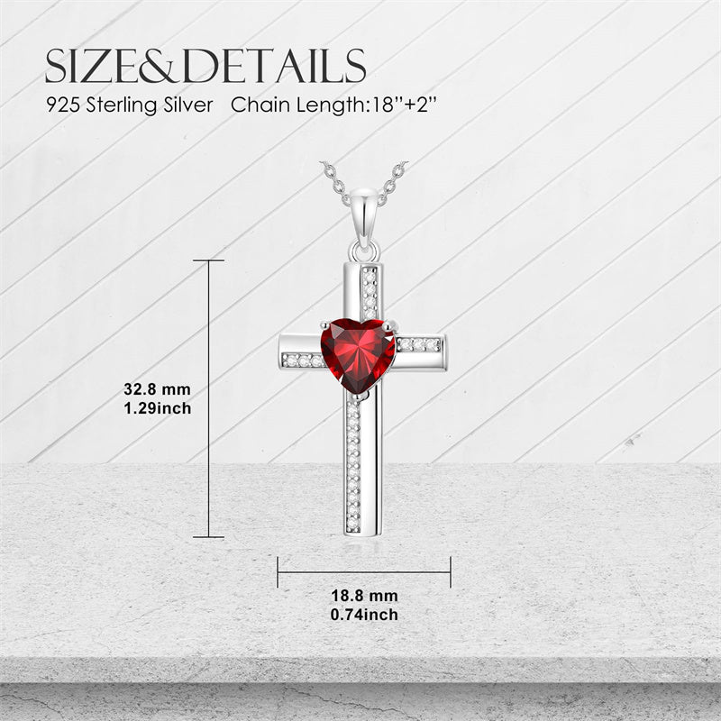 The Cross Birthstone Necklace design features a cross pendant adorned with a birthstone of your choice, representing your birth month.