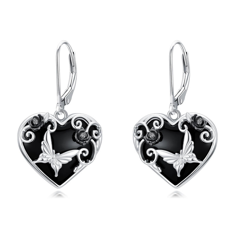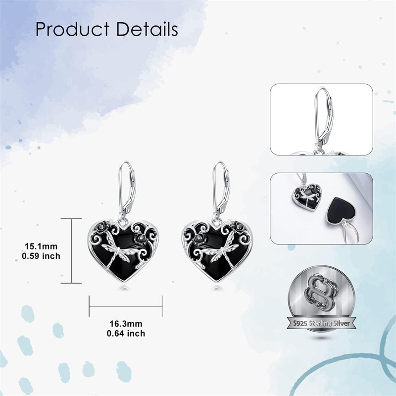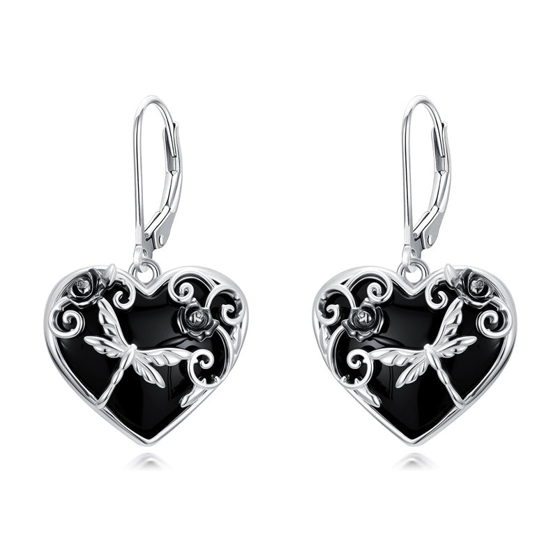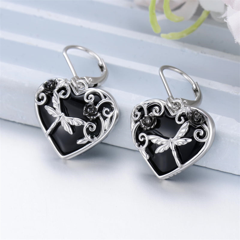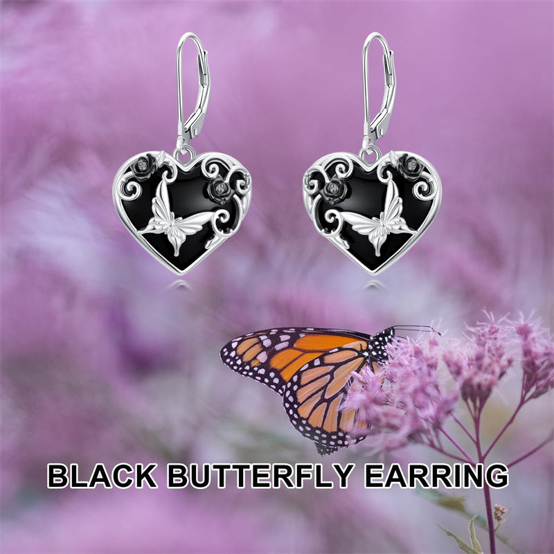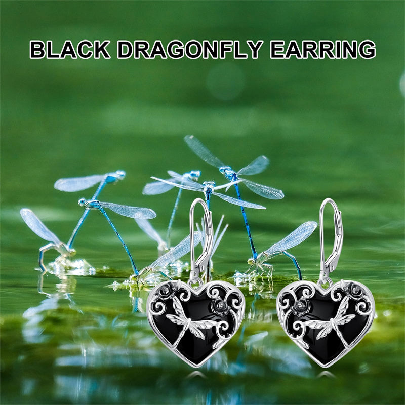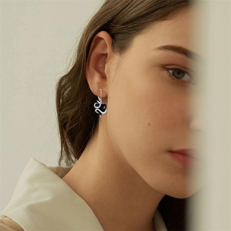 [Obsidian Snake/Hummingbird/Butterfly/Dragonfly Earrings]:These earrings, inlaid with a single piece of black agate, exude an elegant and mysterious air.