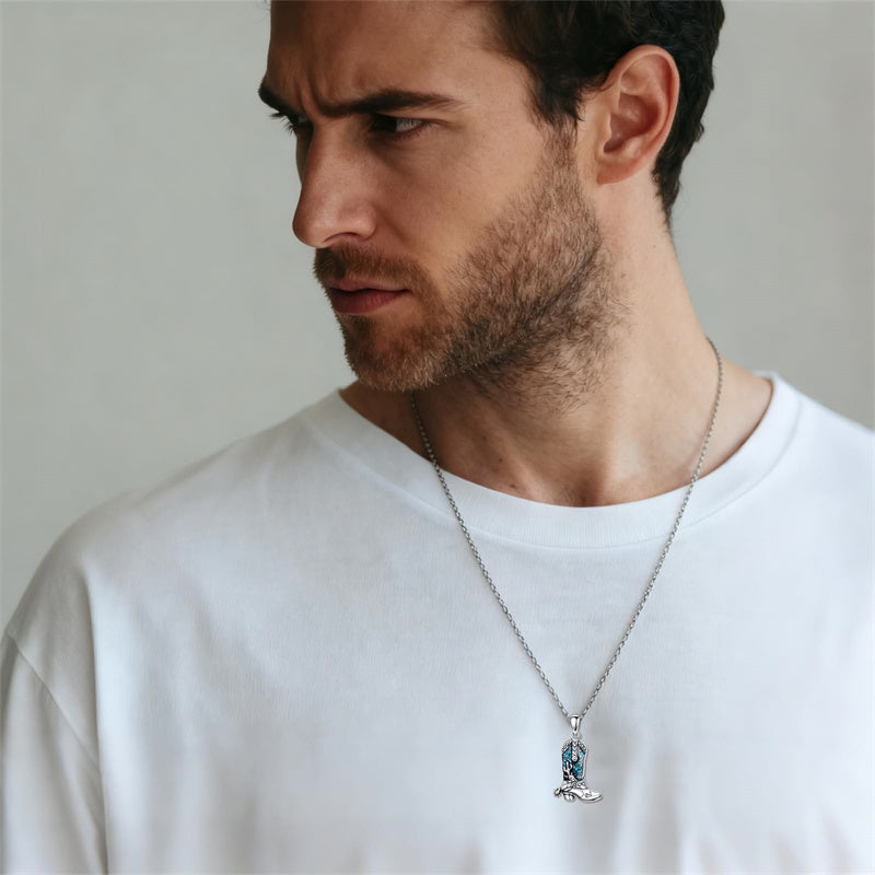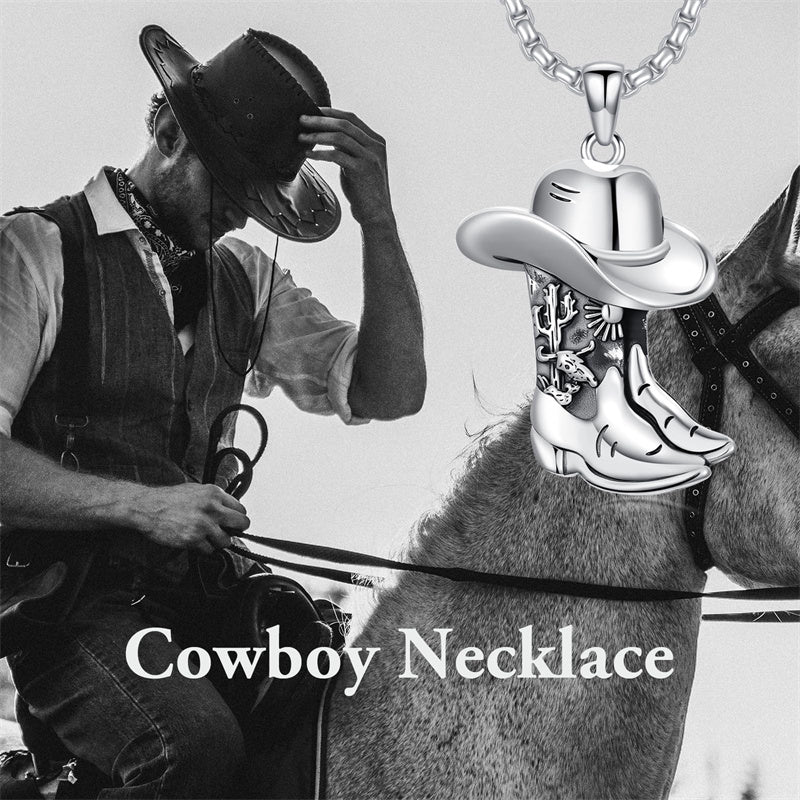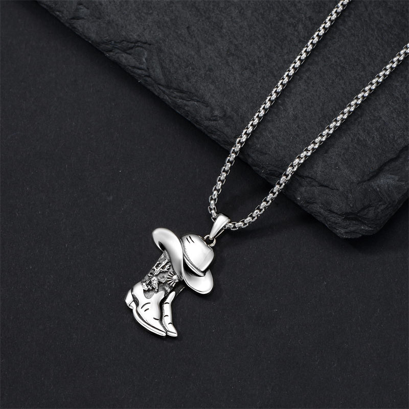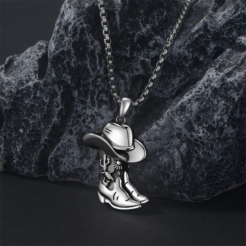 [Cowboy Necklace]: The Cowboy Boots Necklace is a jewelry piece that is both wild and sexy, combining the western-inspired look of cowboy boots with the natural beauty of a cowboy hat. This necklace is not only a tribute to the spirit of freedom and adventure, but also a piece of fashion and nature.
