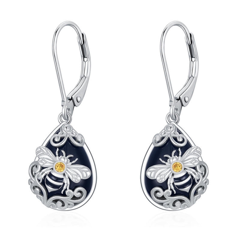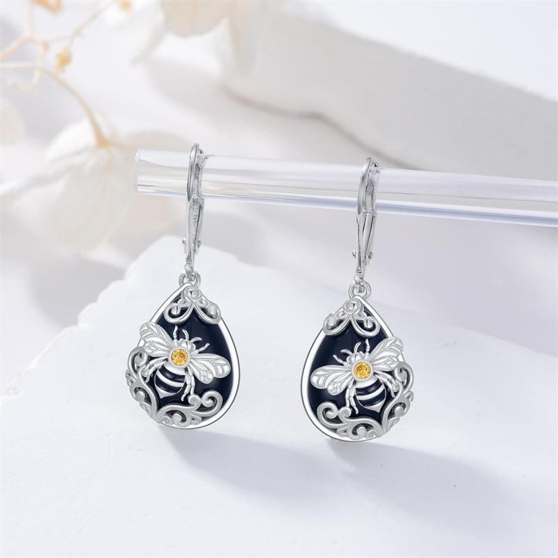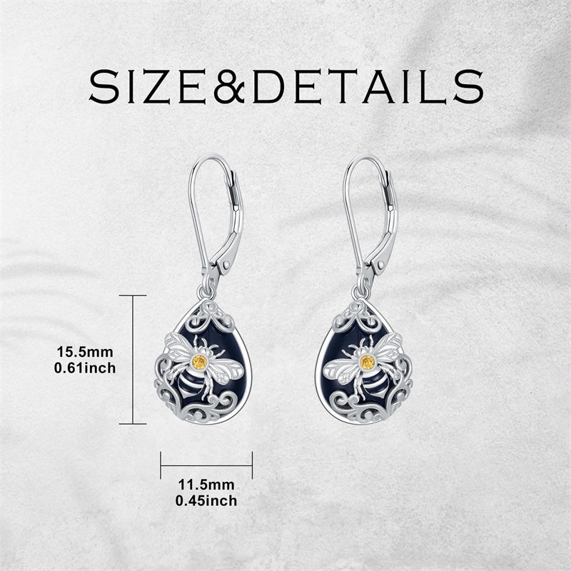 Bee Earrings for Women: The bee symbolizes diligence, wisdom, and good luck. With delicate filigree design and black onyx embellishment, the bee dangle earrings add elegance to your look. Our bumble bee earrings are perfect for women to wear, making them stand out in the crowd.