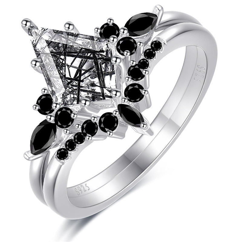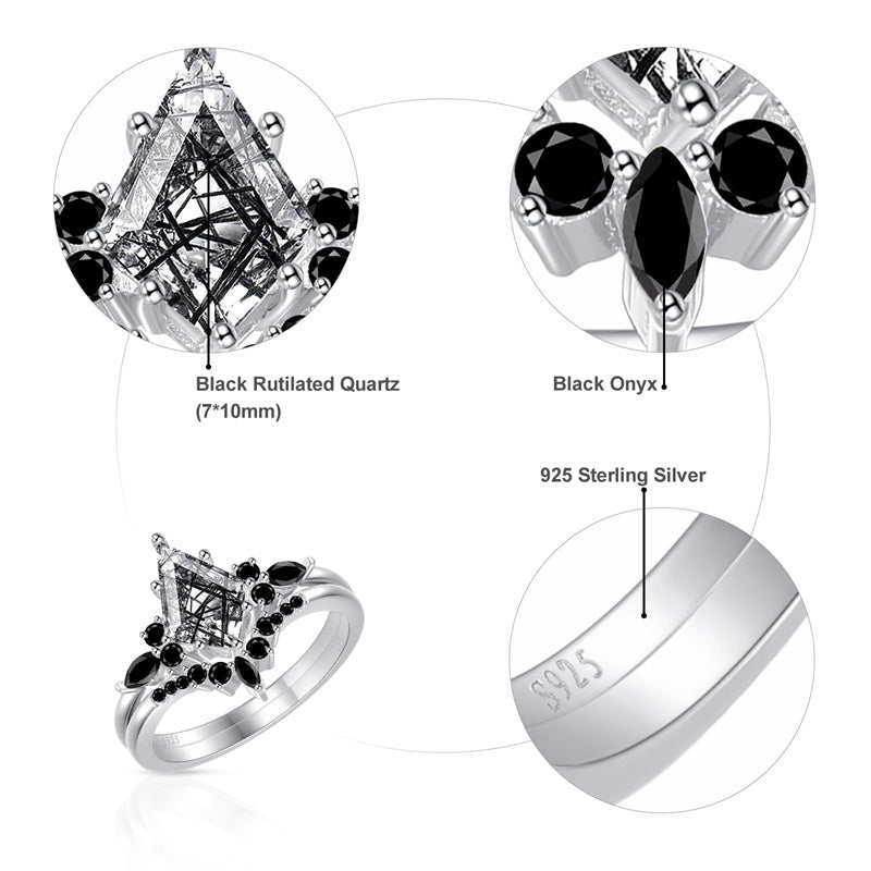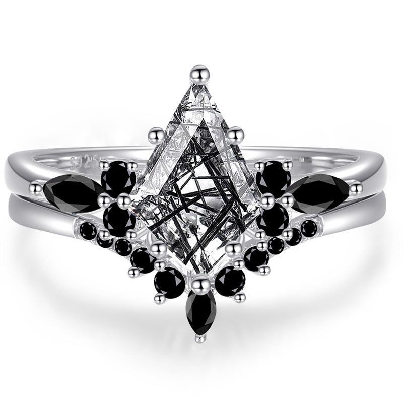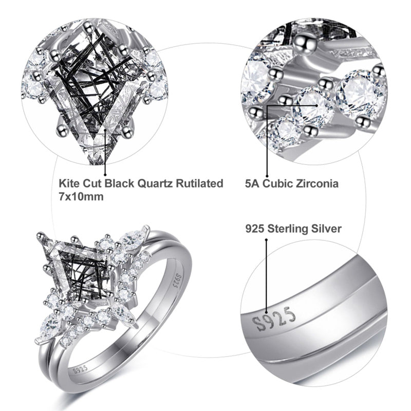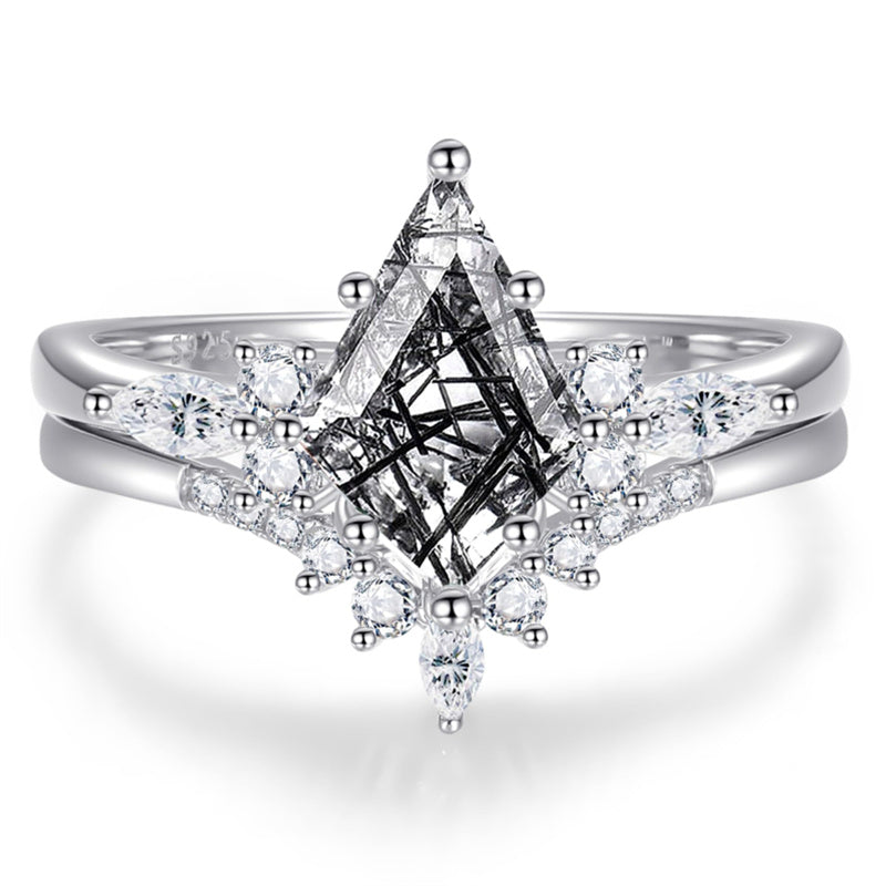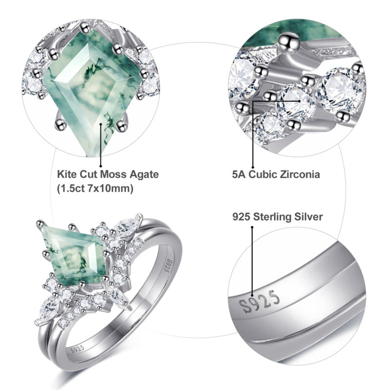 Complete Set: This Gemstone Ring Set includes not only a stunning kite cut gemstone engagement ring but also matching CZ rings, creating a cohesive and harmonious look that symbolizes unity and togetherness.