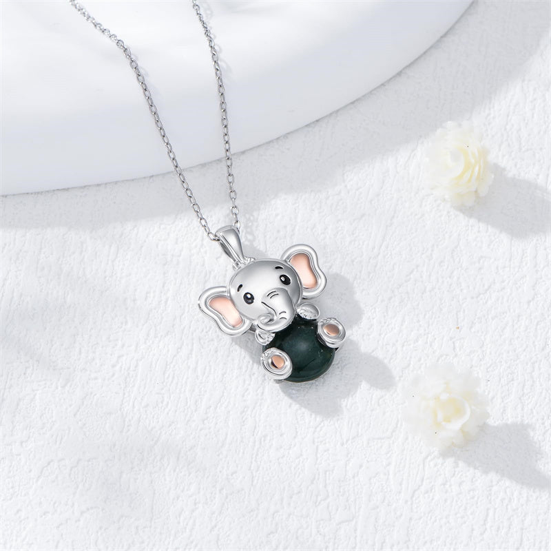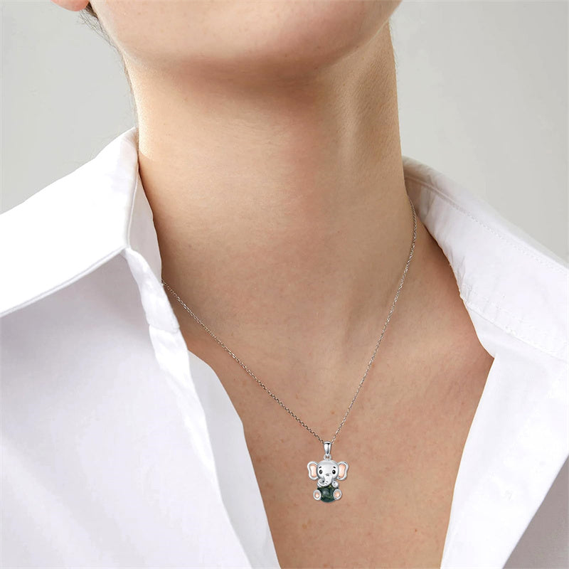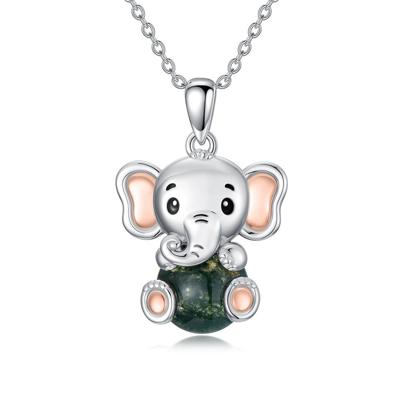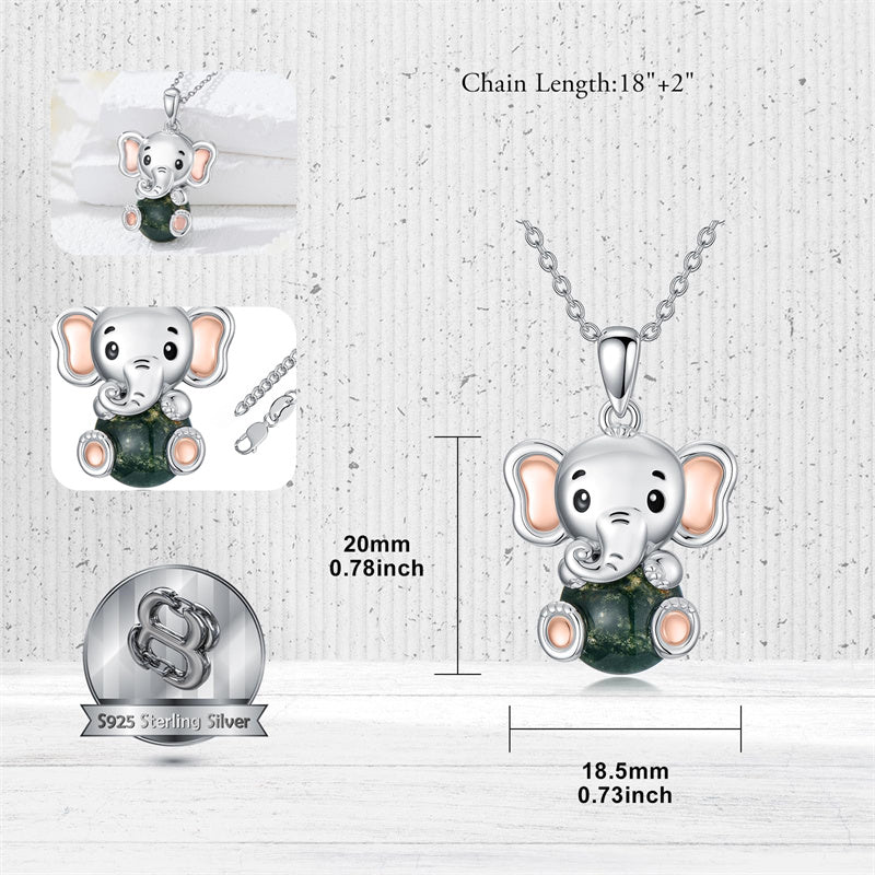 Moss Agate Elephant Necklace: Inspired by the elephant, which symbolizes good luck. Give this necklace with a beautiful meaning to your loved one.