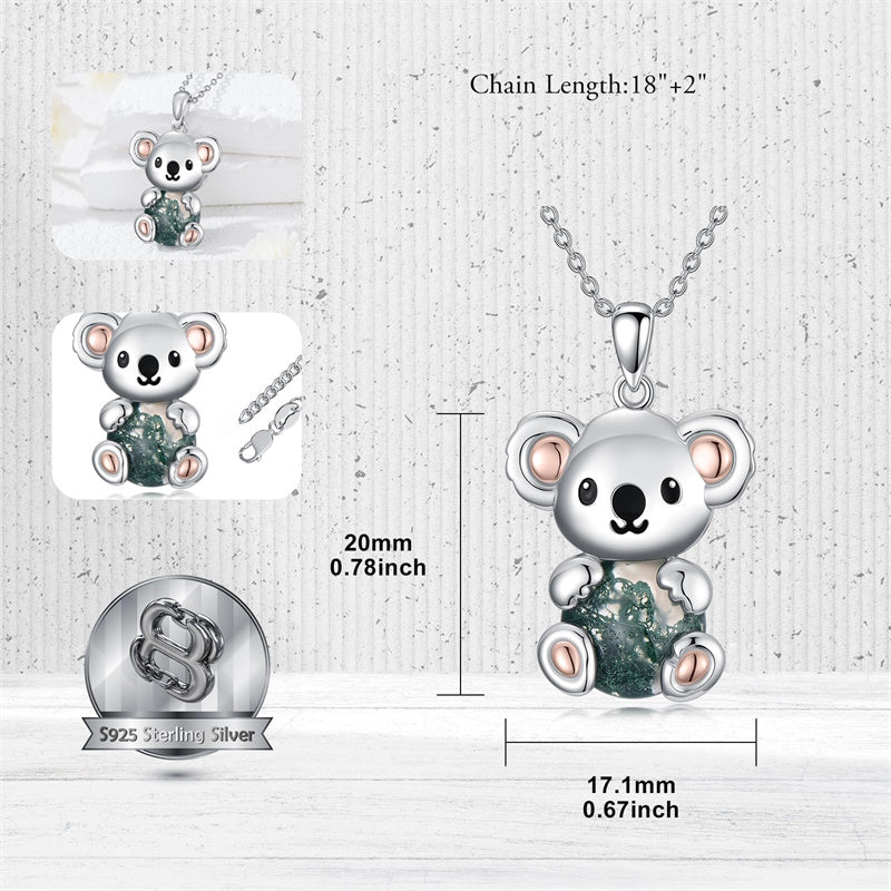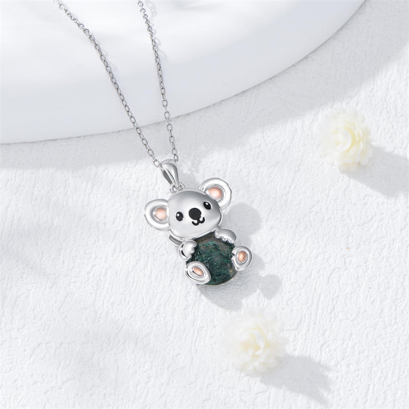 Moss Agate Koala Necklace: Koalas represent resilience, strength, luck, and protection - all qualities that can help us navigate life's challenges with grace.